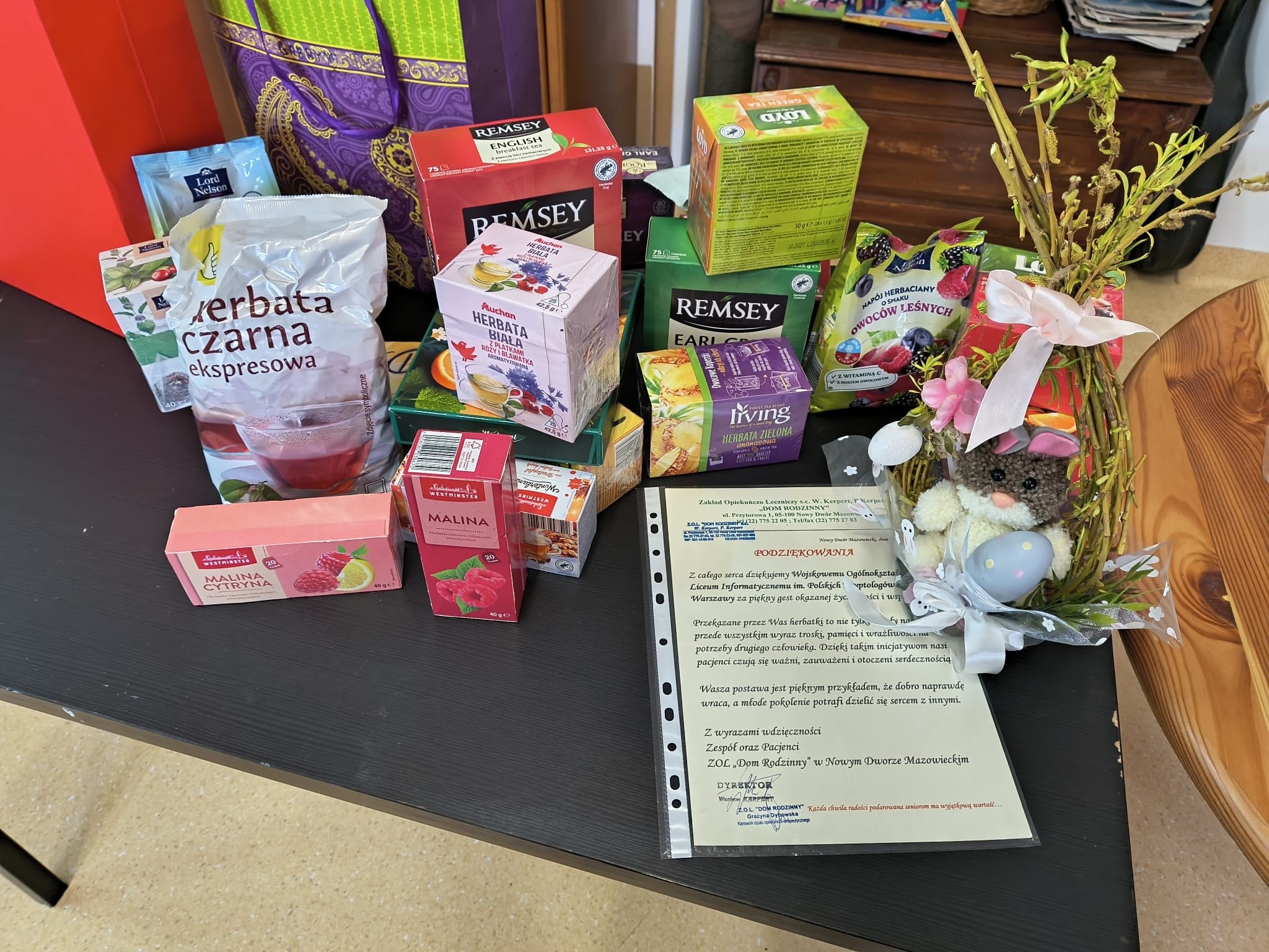 Przekazane herbatki to piękny gest, który sprawił wiele radości i wywołał uśmiech na twarzach naszych mieszkańców